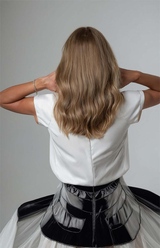 Soft-Wavy Caramel Loire Wig (Black Rooted)
